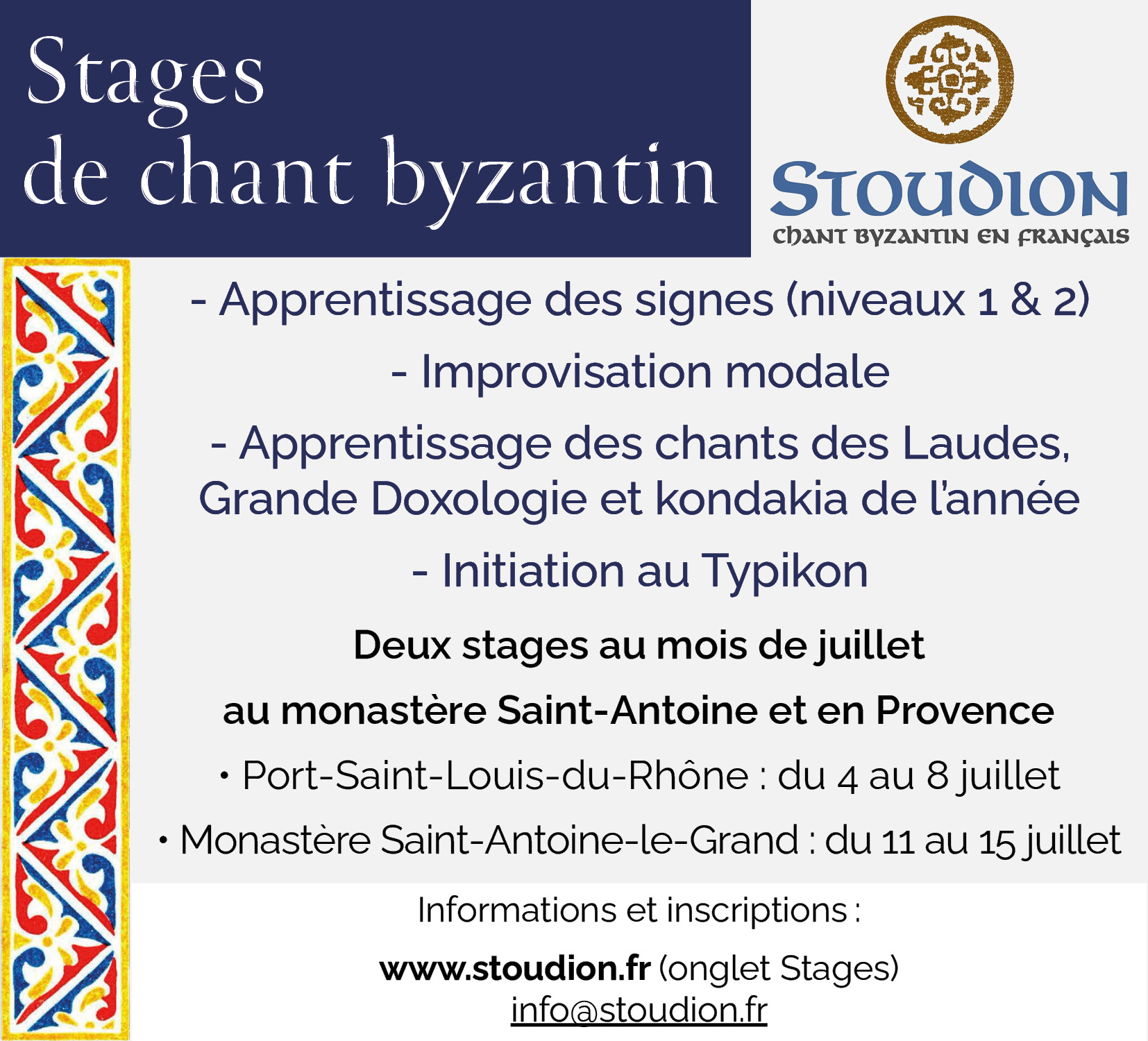 Aucun prérequis musical n’est nécessaire ! Ce stage s’adresse particulièrement aux membres des chorales paroissiales désirant s’initier ou approfondir leurs connaissances du chant byzantin.